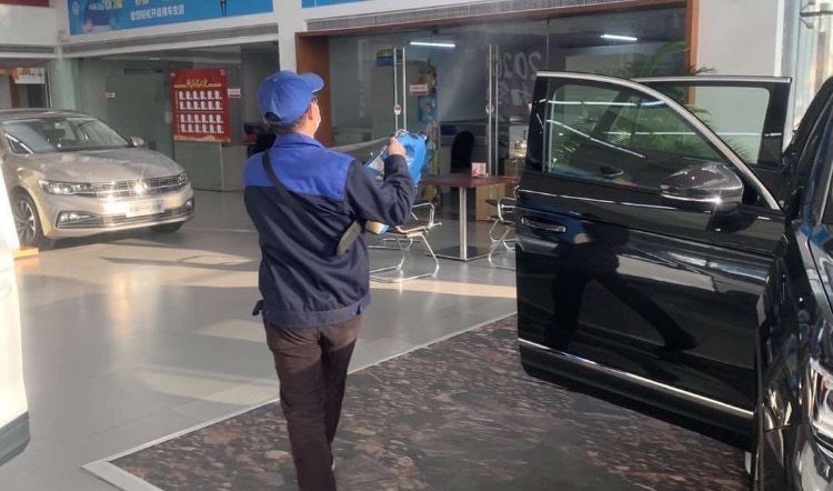 ▲各4S店按要求每日对展厅、展车进行消毒