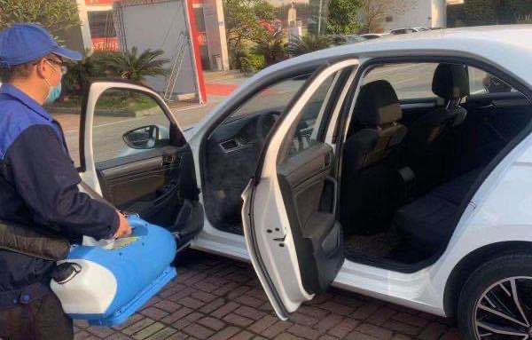 ▲对试驾车进行清洗消毒