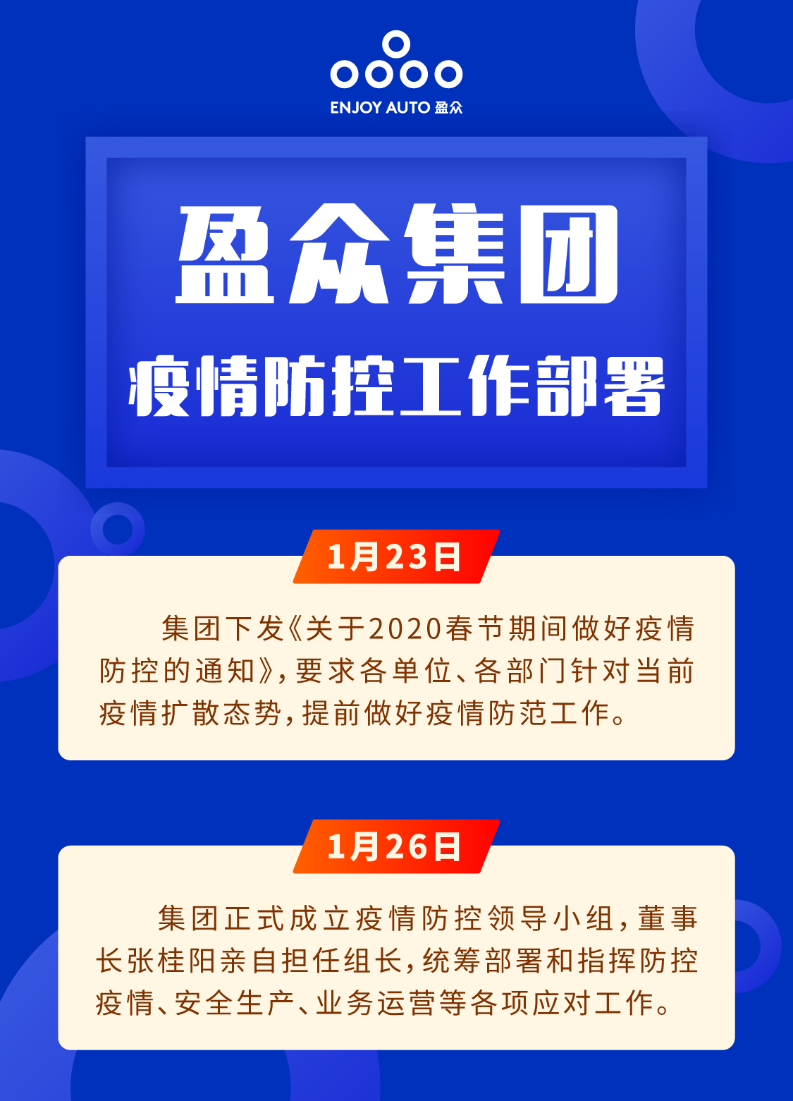 当前,新冠肺炎疫情仍然牵动着亿万人的心,相信有各级政府的有力应对和各个厂家的坚实后盾,在集团的坚强领导与全体盈众人的共同努力下,我们定能共克时艰,共渡难关,打赢疫情防控阻击战!