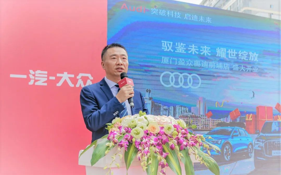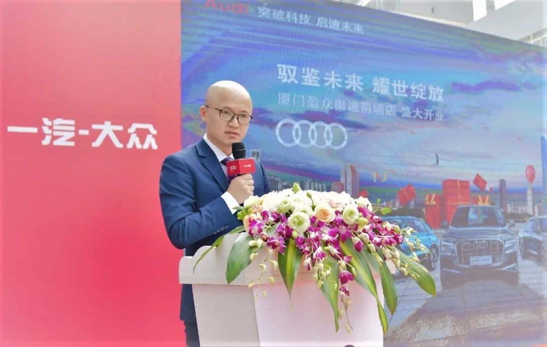 一汽-大众奥迪销售事业部东南区区域主管销售经理叶鹏向厦门盈众奥迪送上了诚挚祝福,并且表达了自己的希冀:希望厦门盈众奥迪前埔店全新数字化体验中心以其示范效应,带动一汽-大众奥迪品牌在新区域的发展与蓬勃;也衷心希望厦门盈众奥迪前埔店能够不忘初心,砥砺前行,继续为广大客户提供优越的购车服务,为盈众集团创造更多效益,也为一汽奥迪的份额做出更大的贡献。