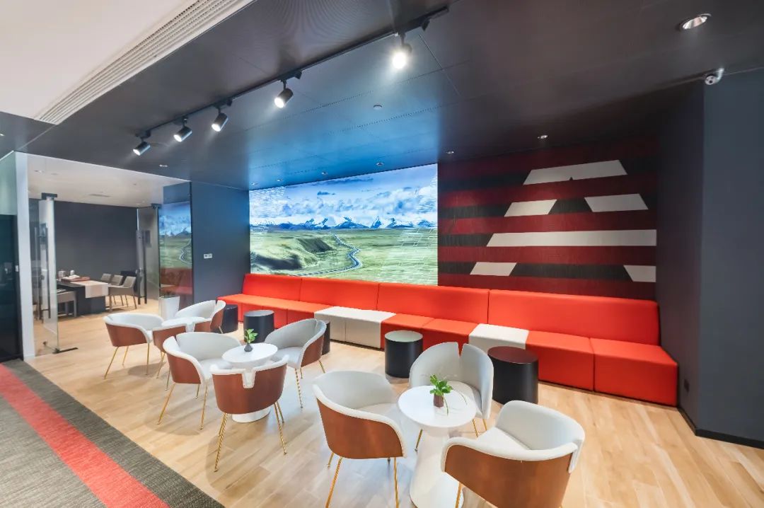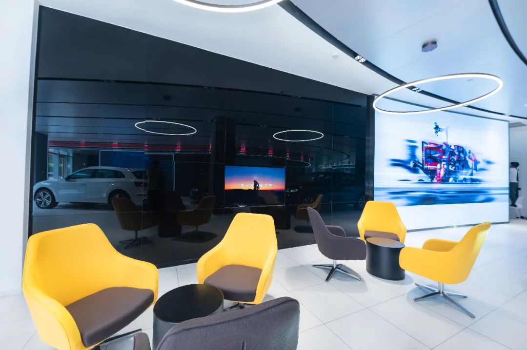 客休区和洽谈区充满活力的色彩搭配带来更轻松愉悦的赏车环境。进入展厅,你不仅可以获得丰富有趣的个性化品牌体验,还能觅得片刻惬意的闲暇时光。