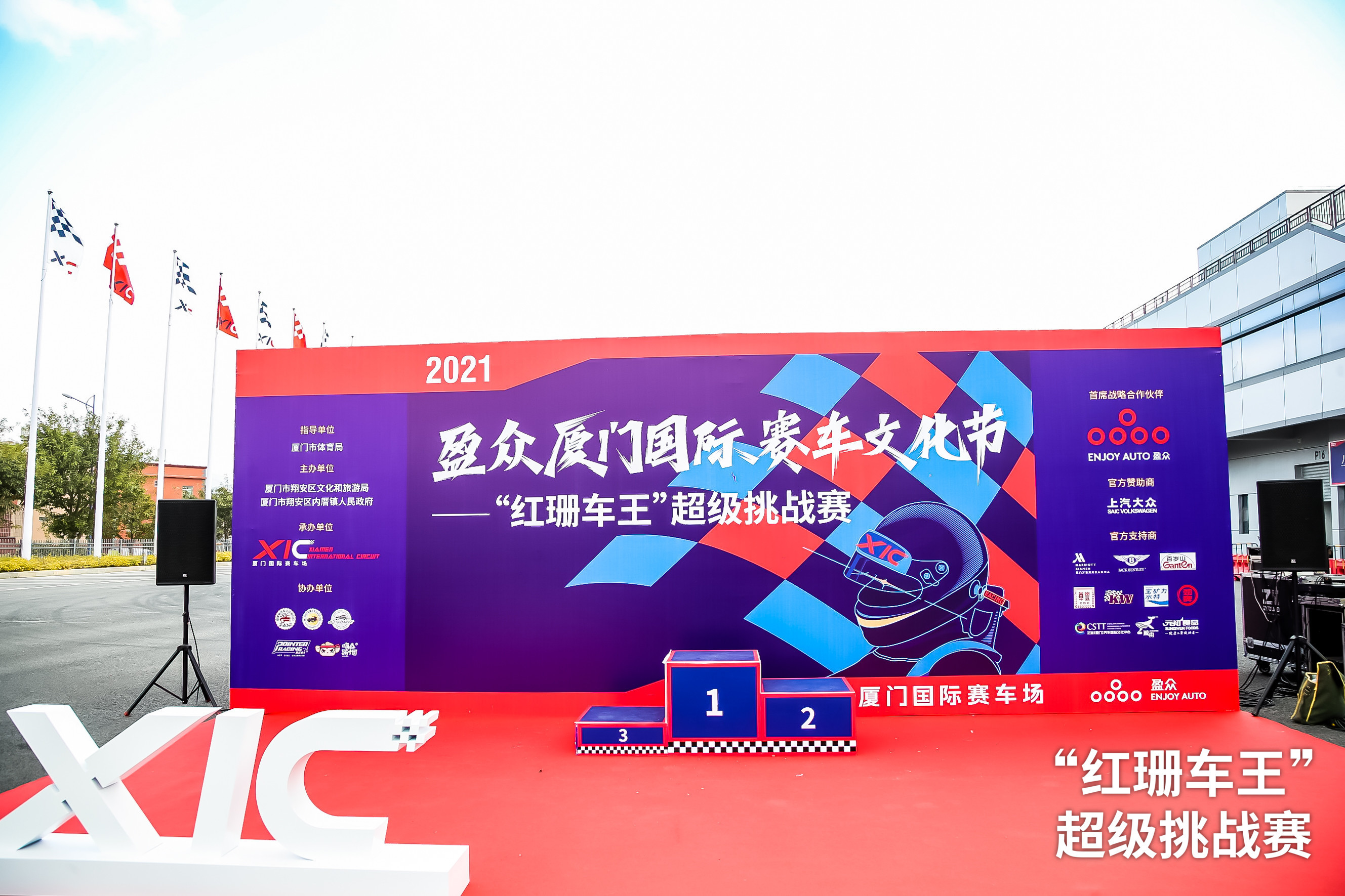 2020年最后一天,旗杆上飘扬的XIC旗帜、前广场搭建完成的活动物料以及赛事主大楼内忙碌的身影,都无声地透露着厦门国际赛车文化节组委会对这次活动的期盼——在2021年的第一天,和大家相聚厦门国际赛车场。