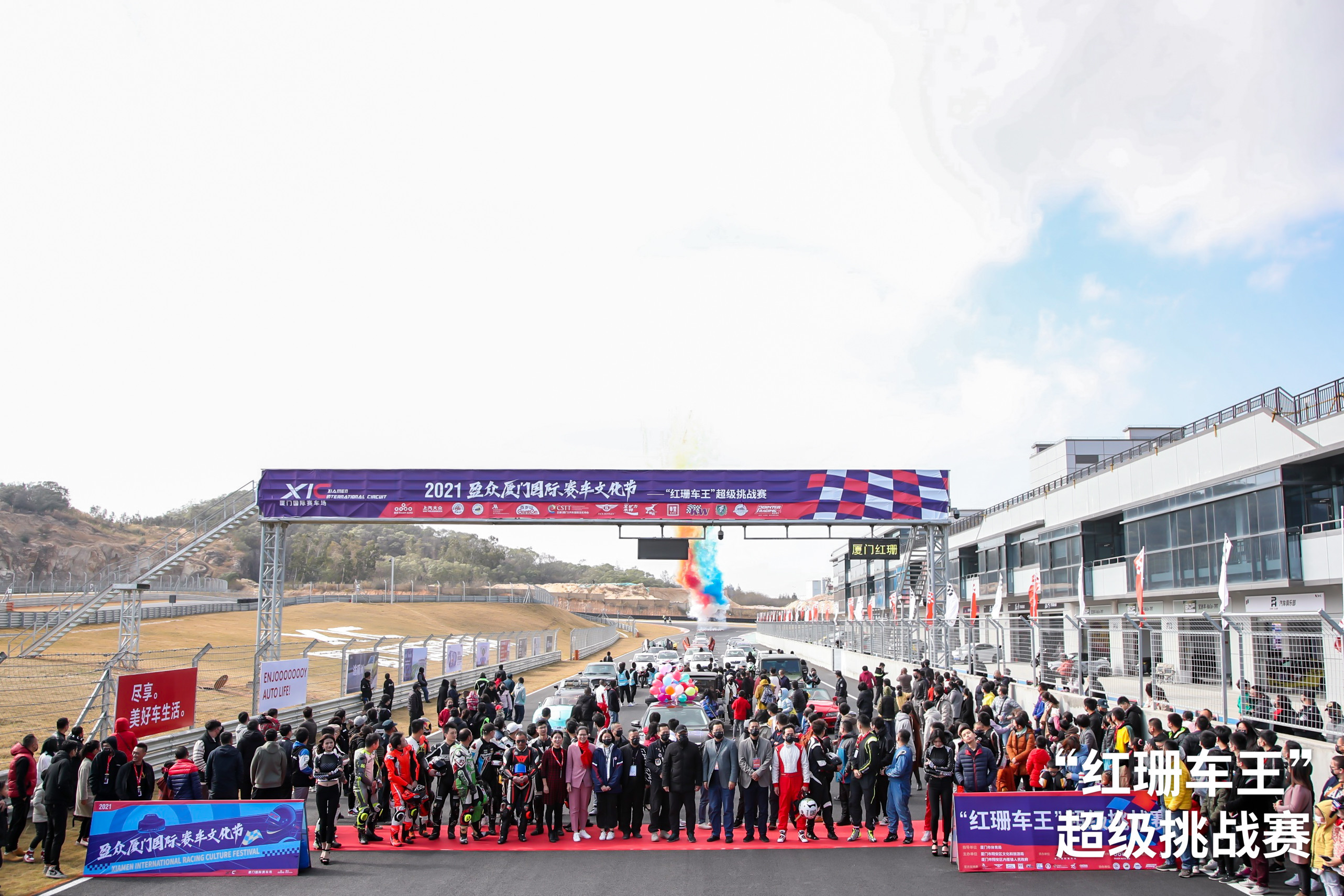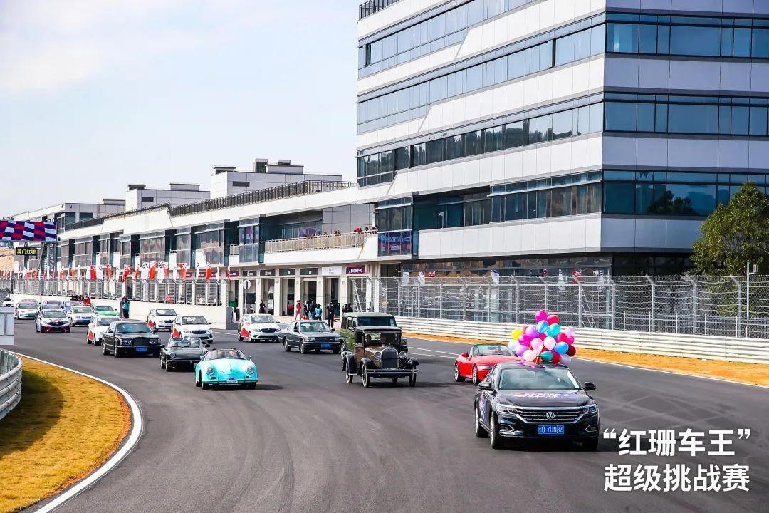 在领航车上汽大众帕萨特的带领下,赛道巡游震撼上演。由老爷车、摩托赛车、专业赛车、盈众“红珊车王”超级挑战赛赛车组成浩浩荡荡的车队,在厦门国际赛车场的赛道上绕场巡游,赛车队伍炫酷亮眼、整齐壮观,形成一道亮丽的风景线。车手们用自己独特的方式,在赛道上留下了色彩斑斓的硬派浪漫。