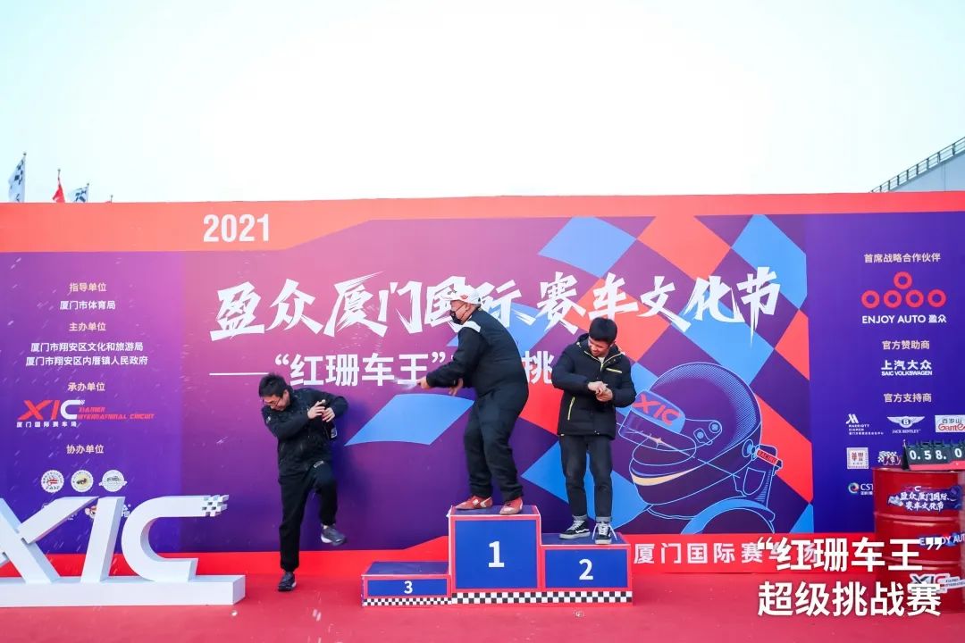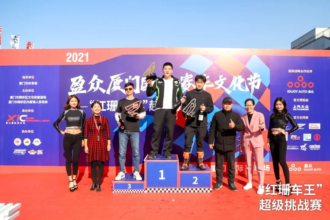 最终,本次比赛共诞生11位细分组别冠军,并角逐出全场冠军。其中,倪豪以58.021秒的全场最快单圈成绩,获得盈众“红珊车王”超级挑战赛揭幕战全场冠军,王悦以58.400秒获得亚军,季军丁铭聪的成绩为59.005秒。颁奖台上的“香槟时刻”,既是庆祝,也是下一次聚首的约定。