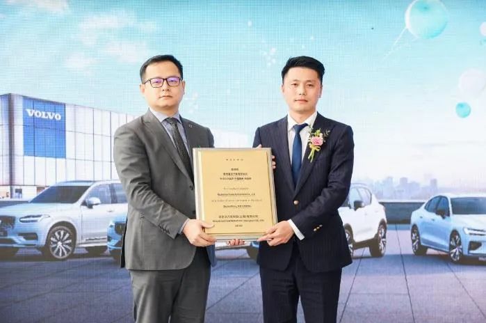 授牌仪式上,沃尔沃汽车大中华区销售公司经销商网络发展高级经理万维巍授予泉州富沃品牌经销商授权牌。