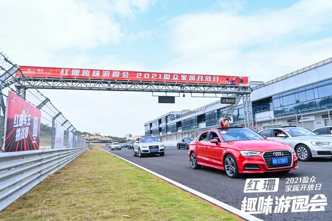 赛道巡游作为本次活动的特色环节,对员工和家人们来说,也是一次十分新奇的体验。浩浩荡荡的车队,载着盈众家人们和满满的幸福,在赛道上缓缓前行。