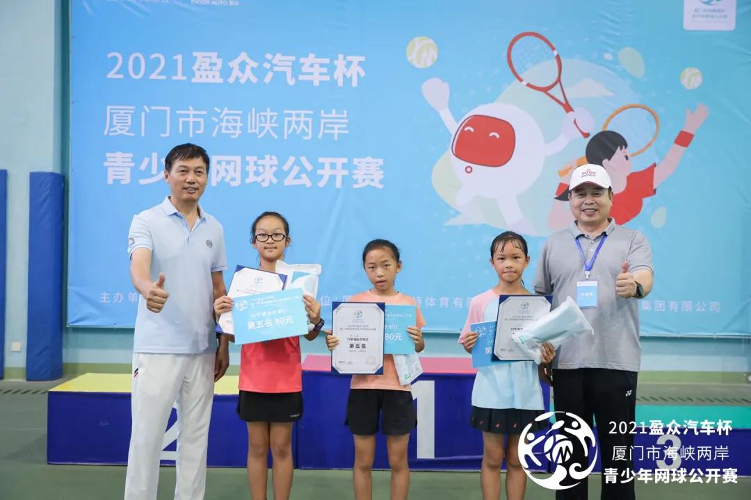 厦门市网球协会党支部书记、秘书长陈瑞春,厦门市爱尼特体育有限公司总经理宋卫星,盈众控股集团品牌传播部总监周薇等嘉宾分别为获奖选手颁奖