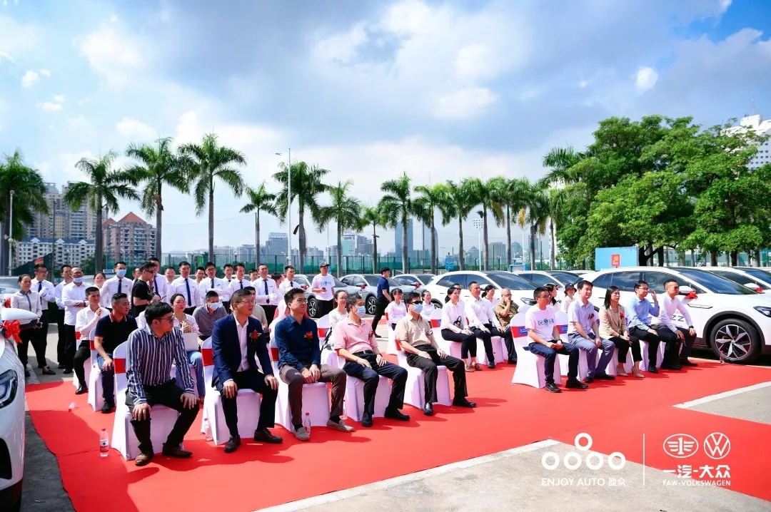 厦门市机关事务管理局副局长郑瑞文、一汽-大众大众品牌福建区域经理曲慧博、盈众控股集团副董事长孙聘仁等领导嘉宾,以及多家新闻媒体一同见证了此次交车仪式。作为投洽会贵宾接待用车,50台一汽-大众ID.4 CROZZ正式交付,将在会议期间为与会贵宾提供尊贵、舒适的出行服务。