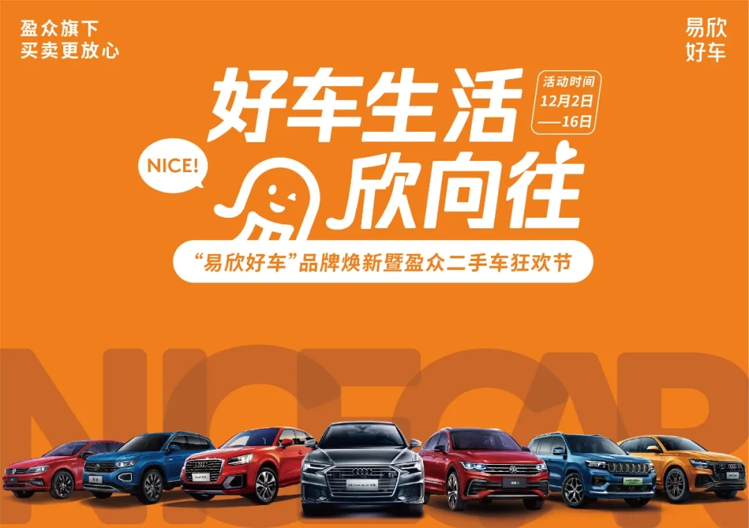 随着易欣好车全新品牌形象的发布,12月2日至12月16日,以“好车生活 欣向往”为主题的二手车狂欢节活动也将同步开启,活动期间200台精品福利二手车及20台一口价特价车将在易欣好车门店及盈众全省4S店的直播间亮相,为消费者提供放心优质的产品和便捷的购车渠道,在年末掀起一轮购车热潮。