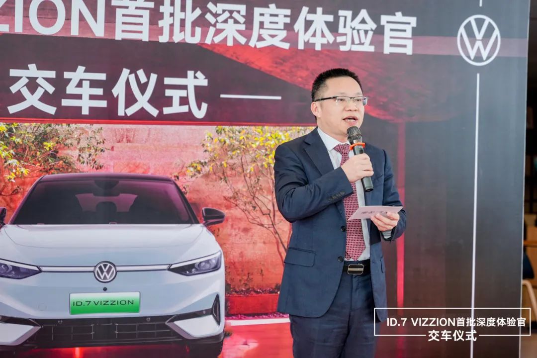 精彩纷呈的点睛仪式和热闹非凡的舞狮表演后,盈众控股集团总经理易远航上台致辞。易总表示:“自2019年开始,盈众就坚定不移地踏上新能源转型的征途。2023年,集团正式成立新能源车中心,为客户提供一站式看车、购车服务,打造全新零售体验。本次深度体验用车,将让更多车友近距离感受ID.7 VIZZION,体验全新的出行方式。旗下厦门盈众拥有全国首批一汽-大众官方认证的新能源汽车售后维保团队,也将以更加专业和优质的服务,为深度体验ID.7 VIZZION的车主提供更多保障。”