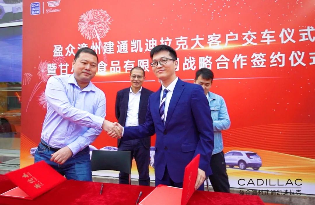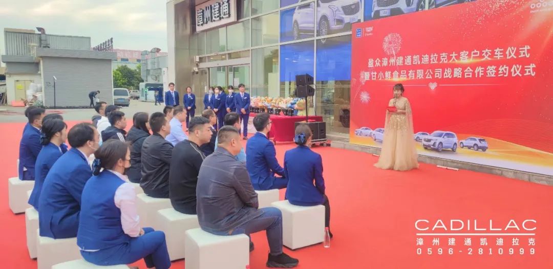 12月12日,盈众漳州建通凯迪拉克与甘小鲜(福建)食品有限公司战略合作签约暨大客户交车仪式在漳州举行,甘小鲜(福建)食品有限公司董事长甘裕勇、总经理常俊岗,盈众集团上汽通用品牌投资人代表林利山、漳州建通凯迪拉克总经理曾蛟龙以及相关业内人士、媒体朋友参加了本次仪式。