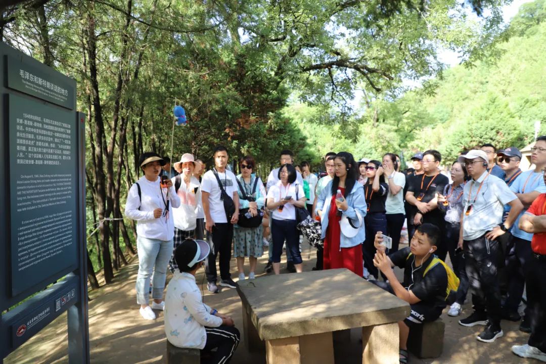 ▲参观杨家岭、枣园等革命旧址。图为1946年8月6日毛泽东主席和美国记者斯特朗谈话所在地,毛泽东在谈话中提出了“一切反动派都是纸老虎”的著名论断。