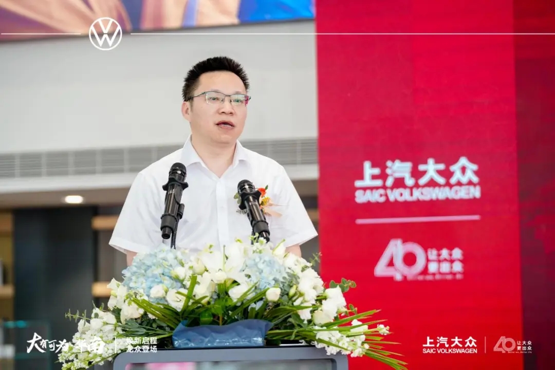 上汽大众大众品牌营销执行总监傅强代表厂家致辞。上汽大众深耕中国40年,持续致力为用户提供高品质的用车体验。近年来,为适应汽车市场激烈的竞争环境,上汽大众在以ID.3作为关键锚点打响新能源品牌影响力的同时,不断精进燃油车,让“大众”用户享受“油电同智”。此外,上汽大众从用户需求出发,提出创造性新理念“拥车成本”,推出创新保值回购方案,降低“保值焦虑”,让用户购车、用车更舒心。傅总表示,盈众集团作为上汽大众优质经销商集团伙伴,多年来持续为上汽大众品牌在闽南区域的营销与销售添砖加瓦。“全新数字化展厅启用后,消费者可以更加直观地了解和体验上汽大众在数字化体验上的积极探索。上汽大众也将与盈众集团一起,携手共进,共创未来。”